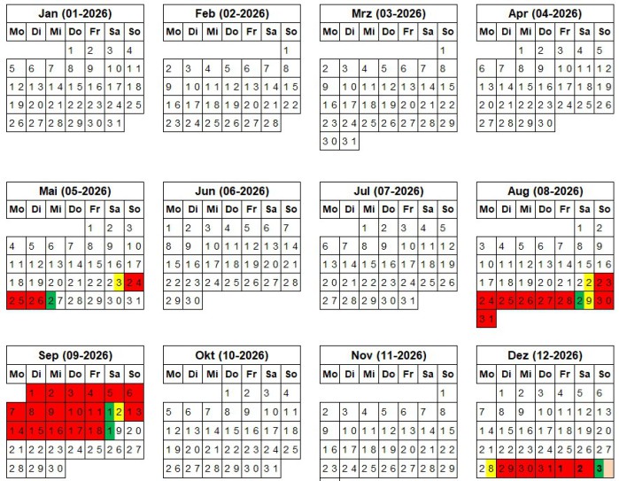 Hier sehen Sie unseren aktuellen Belegungsplan.